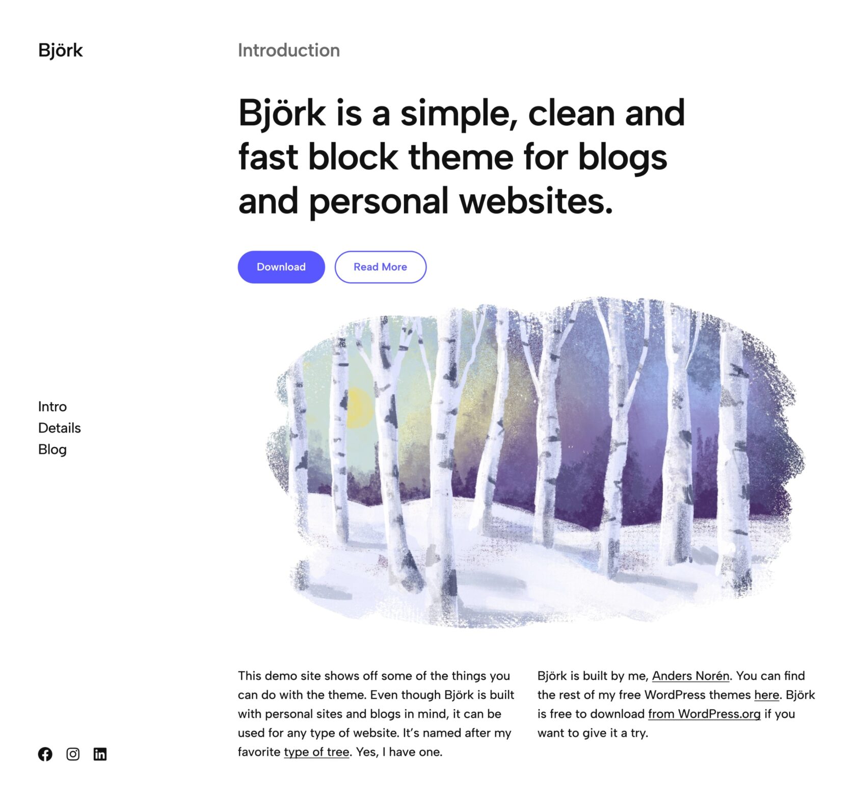 Hey, I have a new WordPress theme out today! It’s called Björk, and it’s a block theme for blogs and personal websites.