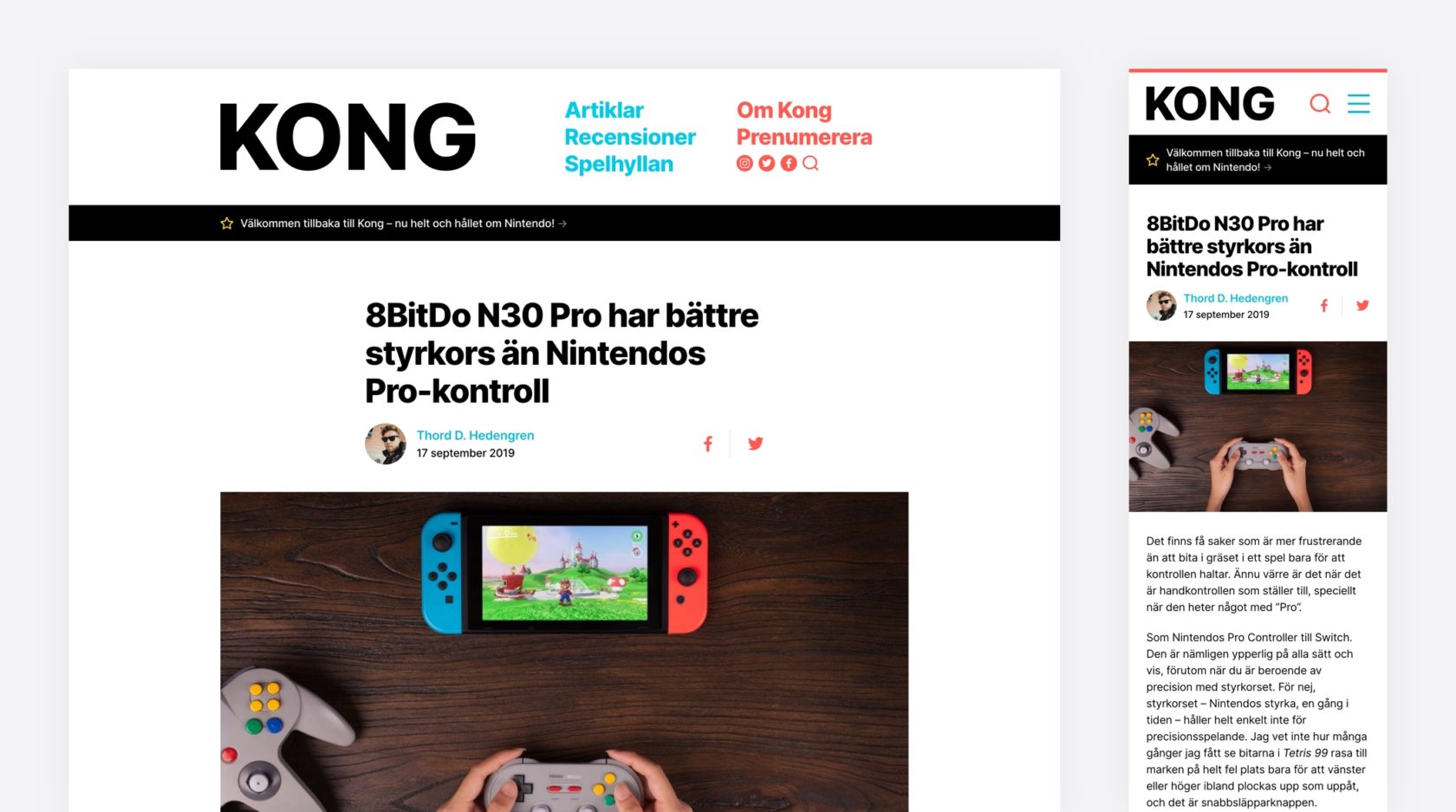 In between time spent on Twenty Twenty, I’ve managed to squeeze in a new project that I’m doing together with my friends TDH, Rickard och Malin. That project is Kong. Kong is a well-known Swedish video game site that Thord ran in the early 2000s, and a couple of weeks ago, he relaunched it with a new focus on everything Nintendo. Nintendo have been on fire lately, with the Switch being the single most exciting piece of gaming hardware in years. I’ve been looking for excuses to buy more games on mine. This is a perfect one.